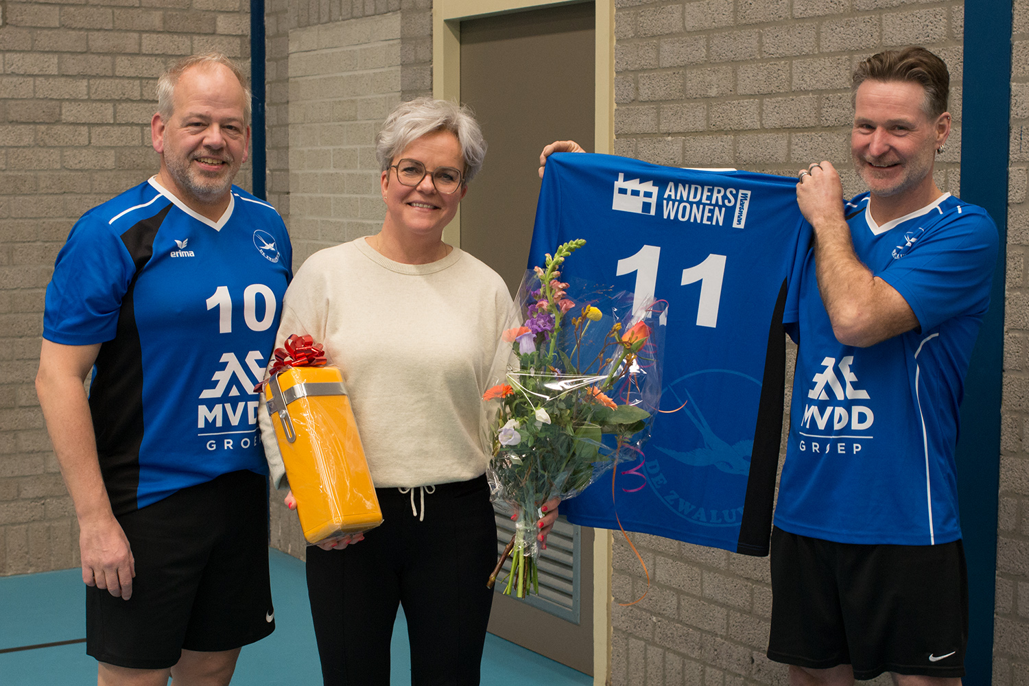 Met de overhandiging van een bosje bloemen en een lekker presentje willen we namens Heren 1 en Volleybal Vereniging De Zwaluwen Raimond Hendriksen (MVDD) en Anja Marsman (Anders Wonen) hartelijk bedanken voor hun sponsoring.